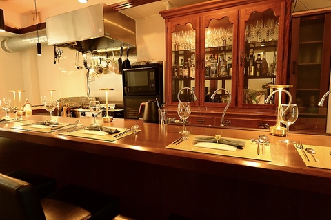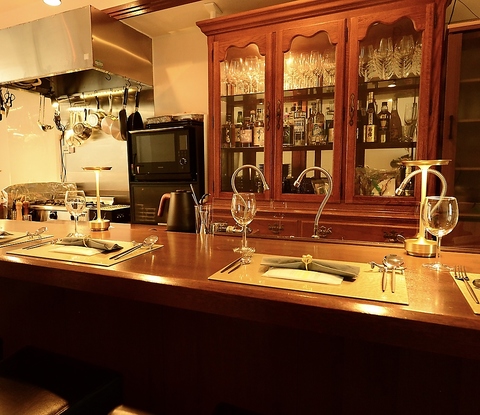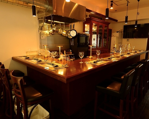 店内にはカウンター席をご用意しております。2名様がご利用できるカウンター席が3つあるので、記念日などのデートや親友のお祝い事にもお使いいただけます。また3名様でお座りいただけるカウンター席もありますので、接待やご旅行の際の記念のお食事にもご利用いただけます。