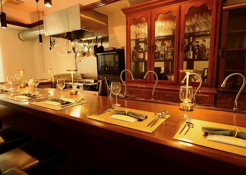 店内にはカウンター席をご用意しております。2名様がご利用できるカウンター席が3つあるので、記念日などのデートや親友のお祝い事にもお使いいただけます。また3名様でお座りいただけるカウンター席もありますので、接待やご旅行の際の記念のお食事にもご利用いただけます。