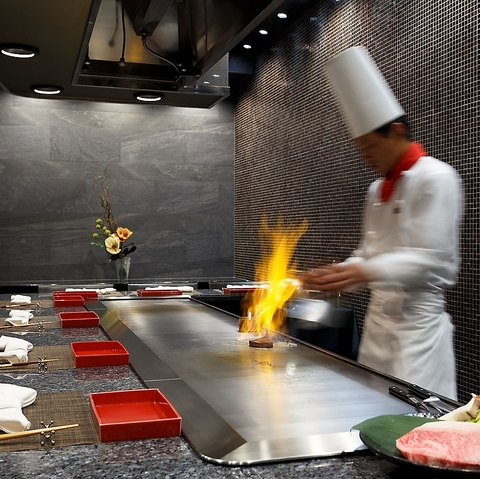 【鉄板焼】目の前で調理されるライブ感をお楽しみいただけます。席数には限りがございますので、事前のご予約がおすすめです。
