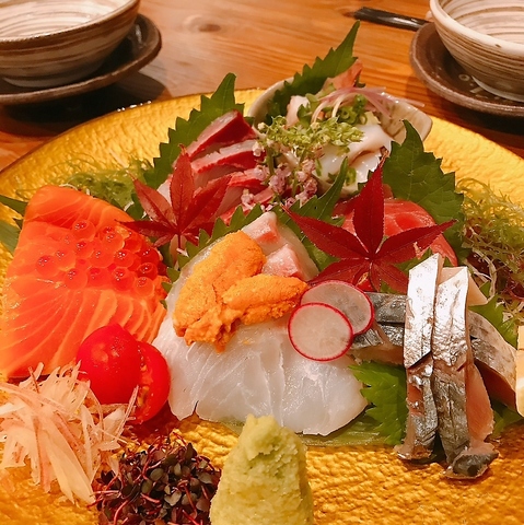 大人気、刺身盛り合わせは見た目も華やか、味も抜群!ご好評いただいております★ぜひ季節の鮮魚のお味をお楽しみください!