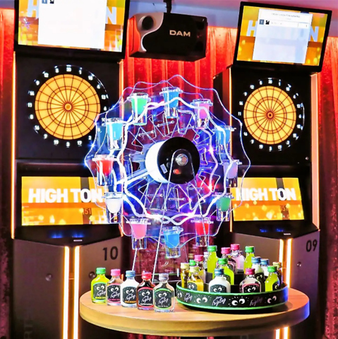 The Wall最上階という唯一無二のロケーション×アミューズメントの融合ダーツ:最新マシンを複数台設置。初心者から上級者まで楽しめるカラオケ:防音設備完備のプライベート空間で思う存分楽しめるバーラウンジ:厳選されたウイスキー、ワイン、カクテルを提供テーブルゲーム:会話が弾む各種ゲームをご用意