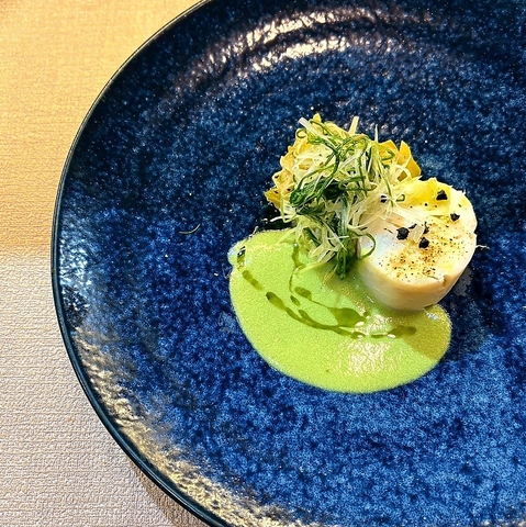 和食の繊細な技法とフランス料理の華やかなエッセンスを融合させた新しいスタイル。旬の食材を活かしたコース料理で、五感を満たす贅沢なひとときをお届けします。落ち着いた空間で、フレンチの美しさと割烹の奥深さを楽しむ特別な時間。記念日や接待にも最適です。