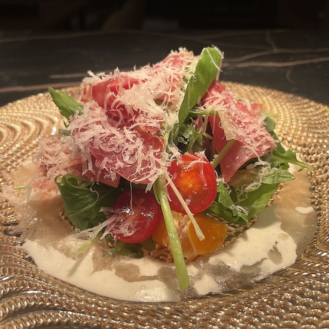 雲丹・キャビア・トリュフのアミューズから始まり、旬魚のポワソン、黒毛和牛イチボのロッシーニ風まで贅を尽くした逸品が勢揃い。メッセージ入りホールケーキ付きで記念日を華やかに演出できます♪普段使いも可能で本格的なイタリアン・フレンチとカジュアルに楽しめるお店です!