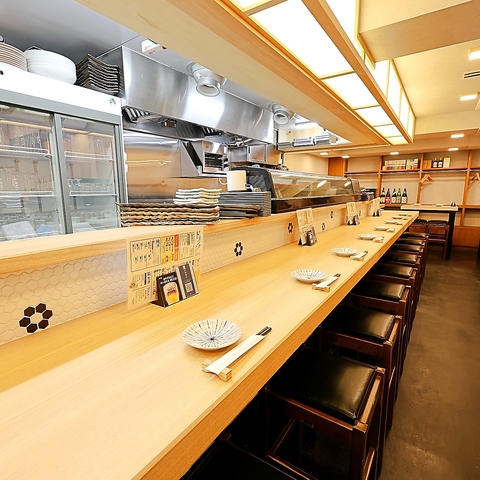 カウンター席では職人の巧みな技とこだわりを目の前でお楽しみいただけます♪職人が演出するライブ感はデートや記念日などの雰囲気にもぴったりです!目の前で握る本格的な江戸前寿司をぜひお楽しみください♪