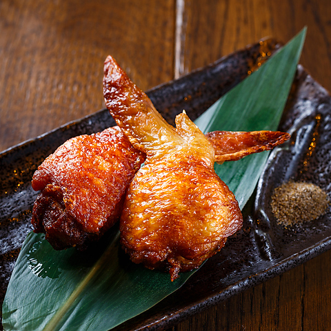手羽餃子2本は、ジューシーな鶏手羽先を贅沢に使った一品。パリッと焼き上げた皮の中には、肉と野菜の旨味がぎゅっと詰まっており、一口かじれば肉汁が溢れ出します。