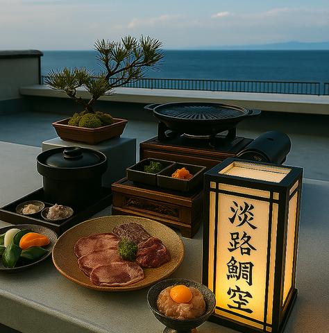 毎朝採れたての新鮮な鯛を使用した鯛ユッケ、淡路牛などを使用した淡路島が贅沢に味わえる和のビアガーデン御膳になります。