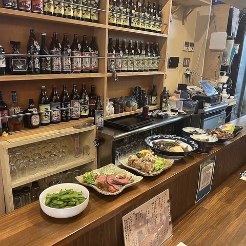 希少焼酎と旬のおばんざいを楽しめる和空間。森伊蔵や村尾、三島村の焼酎も常備。20名規模の宴会や貸切にも対応可能です。