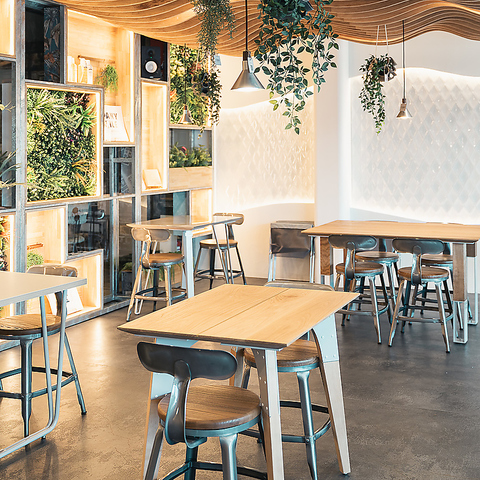 心地よい大人の空間を演出する当店は、DIY商材を使用した独自のインテリア雑貨が彩ります。自社でフルリノベーションを施し、これまでの友安製作所のカフェとは一線を画す落ち着いた雰囲気を実現!洗練されたデザインと温もりのある空間で、特別なひとときをお過ごしください。美味しい料理と共に、心安らぐ時間をお楽しみいただけます。