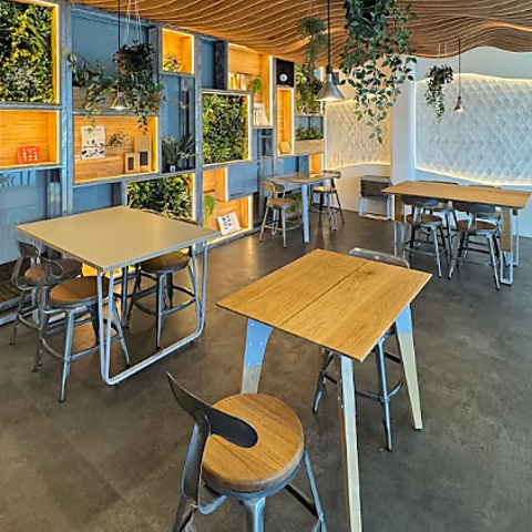心地よい大人の空間を演出する当店は、DIY商材を使用した独自のインテリア雑貨が彩ります。自社でフルリノベーションを施し、これまでの友安製作所のカフェとは一線を画す落ち着いた雰囲気を実現!洗練されたデザインと温もりのある空間で、特別なひとときをお過ごしください。美味しい料理と共に、心安らぐ時間をお楽しみいただけます。