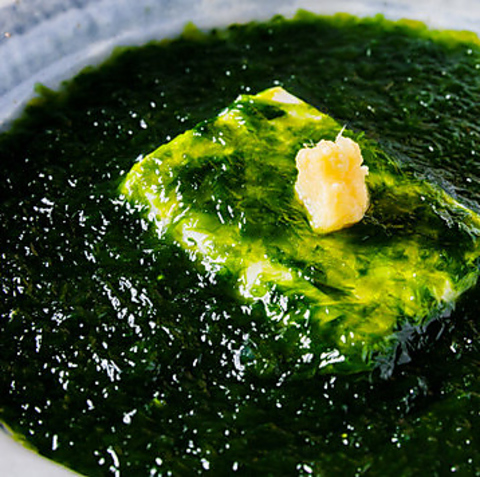 当店名物「青海苔豆腐」は、青のりをふんだんに使用した香り豊かな逸品です。口に入れると磯の香りがふわっと広がり、なめらかな舌触りが特徴。厳選された青のりの風味と、優しい味わいの豆腐が絶妙なハーモニーを奏でます。日本酒との相性も抜群!ハーフの価格は580円(税込)です。