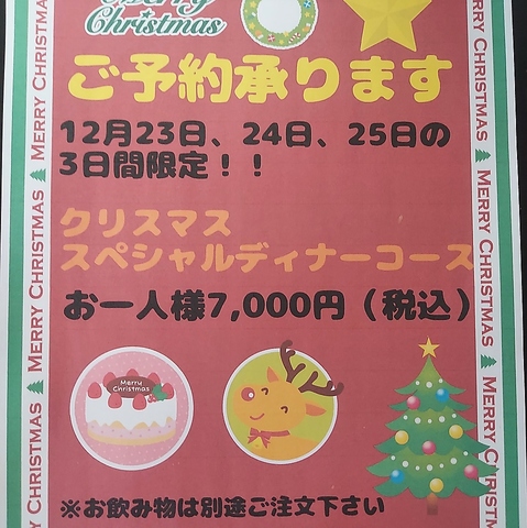 シェフが腕によりをかけてお届けする、クリスマス限定のスペシャルコースです。