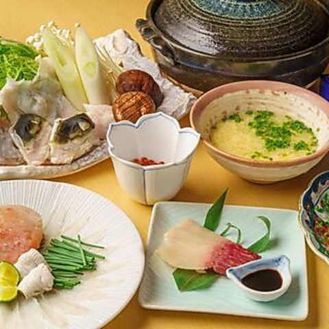 11000円(税込)よりご予算や料理内容のご要望に合わせて、ふぐ料理以外の会席メニューもお電話にてご相談いただけます。【会席内容例】先付・お造り(刺身4種)・焼き物・蒸物or煮物・洋皿or替鉢・揚物・寿司三種・汁物・甘味