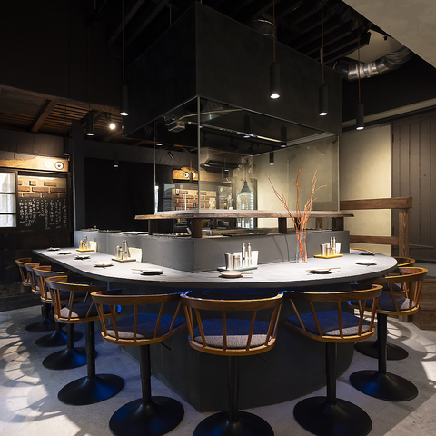 炭火を囲むように設けられた全12席のカウンターは、焼き鳥が焼き上がる様子を間近で楽しめる特等席。香ばしい音と香りに包まれながら、仲間と会話も弾む、まるで囲炉裏を囲むような温かなひとときを!