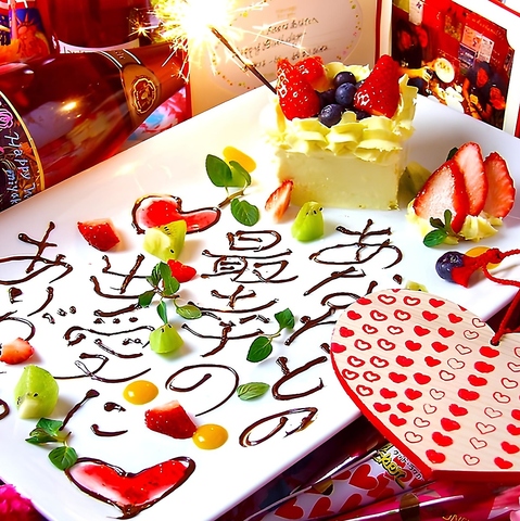 お誕生日でも記念日でも何でもOK☆心を込めた素敵なプレートと共に、皆で全力お祝い♪もちろん無料♪