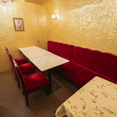 JAZZが響き渡る大人モダンな空間で、古き良き時代の上海の香りに包まれています。落ち着いた雰囲気の中で、テーブル席、ソファー席、円卓など多様なお席をご用意し、さまざまなシーンに対応可能です。心地よい音楽と共に、贅沢な料理を楽しみながら、居心地の良い空間でお寛ぎください。