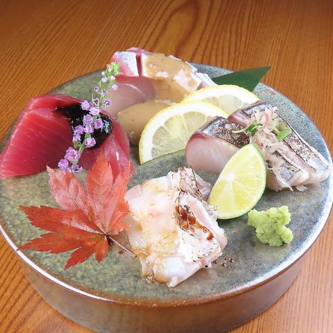 鮮度抜群のお刺身盛り合わせは、新鮮なお魚をお造りにしております。お酒によく合う一品料理も豊富にご用意しておりますのでご安心ください。