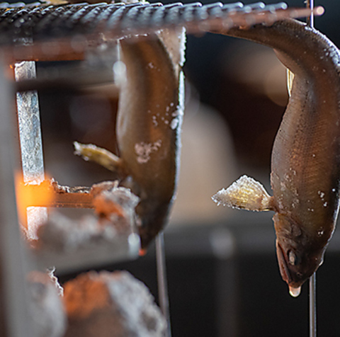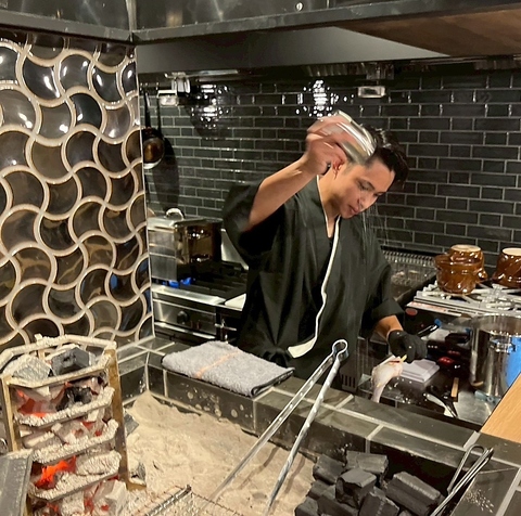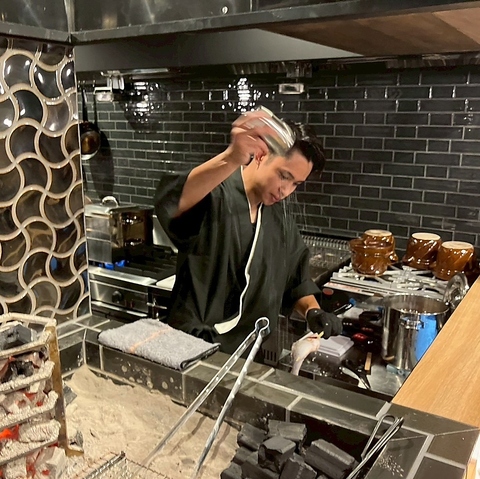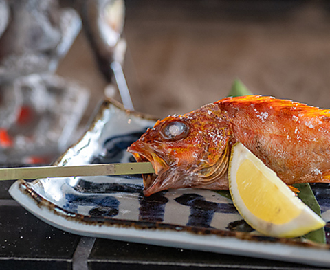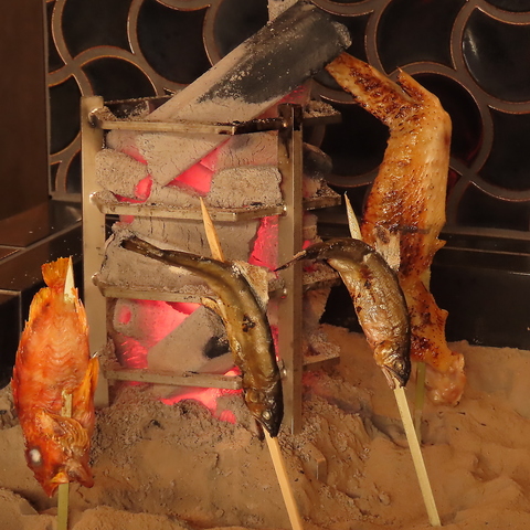外はパリっと香ばしく、中はふっくら。鮮魚やお野菜をそのまま囲炉裏端でじっくりと串焼きにする日本古来から伝わる伝統的な調理法。いっきに焼き上げる原子焼きはを目の前で見れるのはカウンター席の特権です。会社帰り・友人同士・ご宴会はもちろん、大切な接待などにもお勧めです。