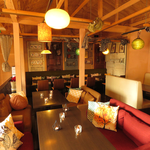 季節ごとに入り口、店内アンティークも変わります。個室でも北欧のアンティークを眺めて楽しめます。所々に置いてあるアンティークとキャンドルも雰囲気を和ませます。1階もソファ席で盛り上がれる空間作り、カウンターもあるのでお一人でも気軽に入れます。カップルシートとしてもご利用できます。