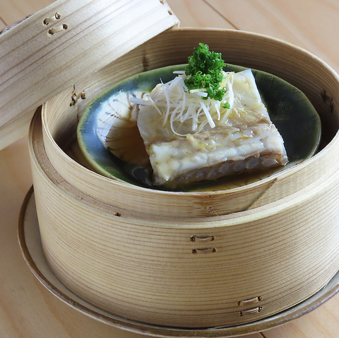 新鮮なふぐの身を、香味野菜とともに蒸しあげ、素材の旨味と香りを最大限に引き出した、上質な逸品。油や辛さに頼らず、「蒸し」で魅せるふぐの真骨頂。