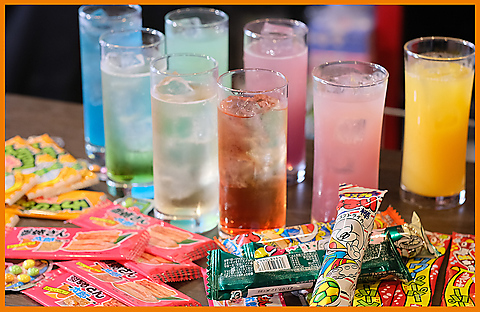 駄菓子をつまみに食べて飲んで盛り上がりましょう♪幼い頃のささやかな夢の「駄菓子食べ放題」を実現!