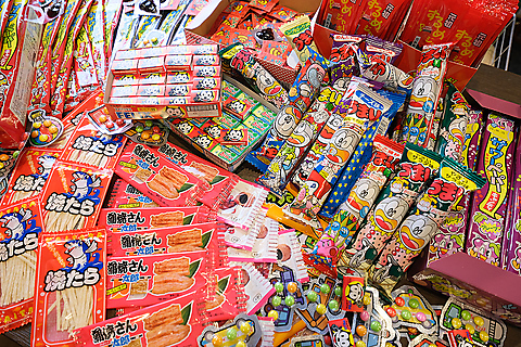 店内の駄菓子コーナーでは、自由にお菓子を取ってOK。子どもの頃に食べたあの味に出会えるかも!