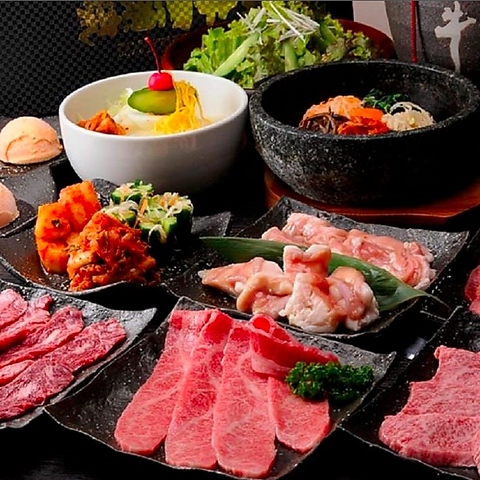 《和牛一頭流》 濃くて柔らかく味わい深い雌の処女牛使用!銘柄黒毛和牛優良販売店指定店。一番人気!極上焼肉コース<全11品>飲み放題付き通常6,480円⇒5,000円!!(ビール付き+500円)とってもお得に極上の国産和牛をご堪能いただけます!!
