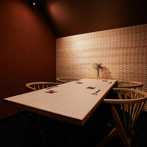 6名様まで着席可能な完全個室。シックな雰囲気でごゆっくりお食事をお楽しみ下さい。