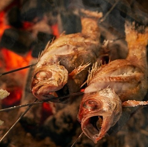 【炭焼き台】炭焼き炉でじっくりと焼き上げた魚は格別な美味しさ。炭の香ばしさや香りも相まって極上の味わいをお愉しみいただけます。