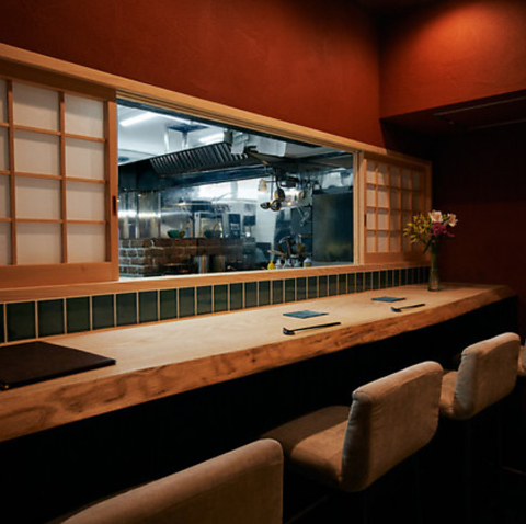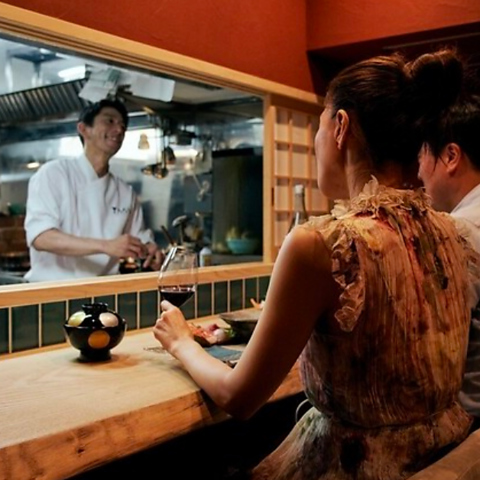 【リラックスした雰囲気で過ごせる個室カウンター席】割烹料理ならではの特別な雰囲気を醸し出すカウンター席をご用意。カウンター越しに店主との心地よい会話を愉しむことも。見た目にも美しい料理を五感で堪能しながら贅沢な時間をお過ごしください。