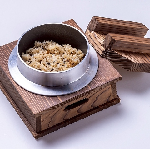 嘉福オリジナルの一品!アグー豚の脂の甘みが染み渡った絶品釜飯。是非ご賞味ください!もう1種類のイカ墨じゅーしーもございます!