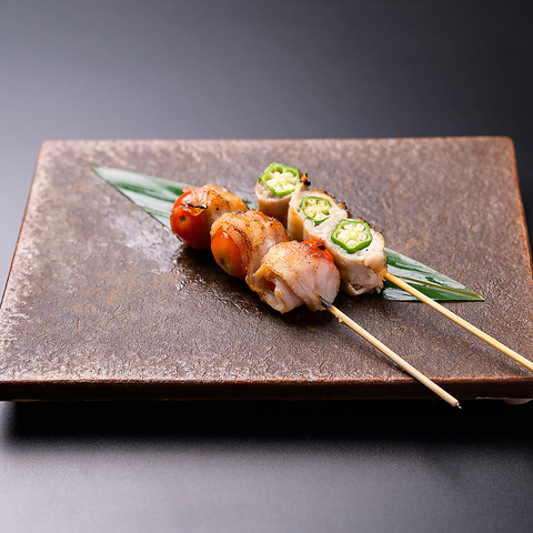 野菜巻き串や鶏皮ぐるぐる串をはじめ、がめ煮やいか明太などの博多名物を数多く取り揃えております◎