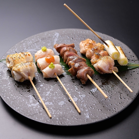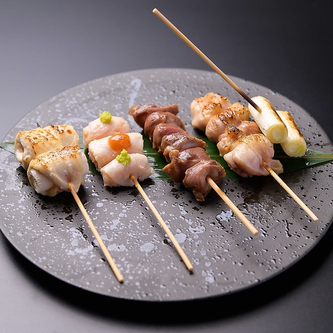 焼鳥には厳選した国産鶏を使用。自家製の焼き塩やタレをつけて素材に合った最適な状態でお楽しみ頂きます。