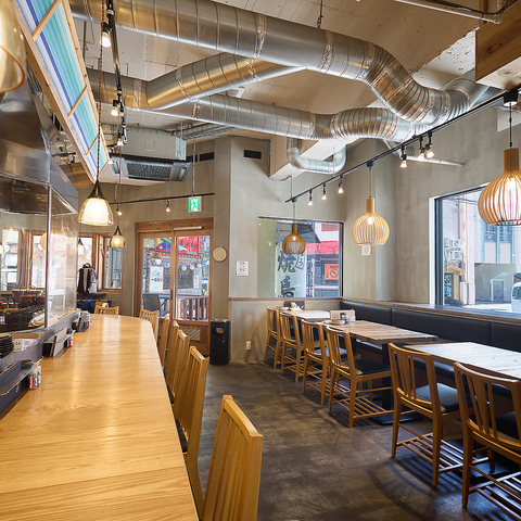 お一人様でのご利用にもピッタリなカウンター席をご用意!お仕事帰りのサク飲みや、お買い物ついでのお食事にいかがでしょうか♪お席毎に一定間隔の幅を設けておりますので、隣を気にせずごゆっくりとお食事をお楽しみいただけます。