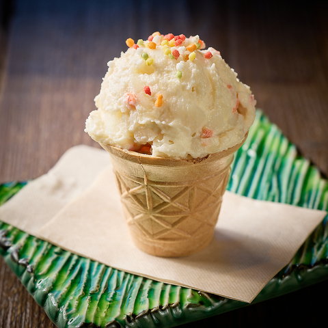 沖縄名物ブルーシールアイスを、もちもちの大福で包んだスイーツ。バニラと紅芋の2種類からお選びいただけます。