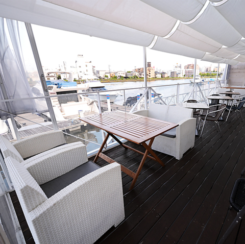テラスからは川が一望できるロケーション抜群のお席です。豊かな自然が感じながら、ゆっくりとお過ごしいただけます。テラス席はペット同伴可能です♪