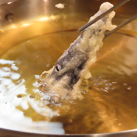 季節に応じて約10種の旬の野菜をご用意。海の恵み、大地の恵みを黄金色の衣でやさしく包み提供いたします