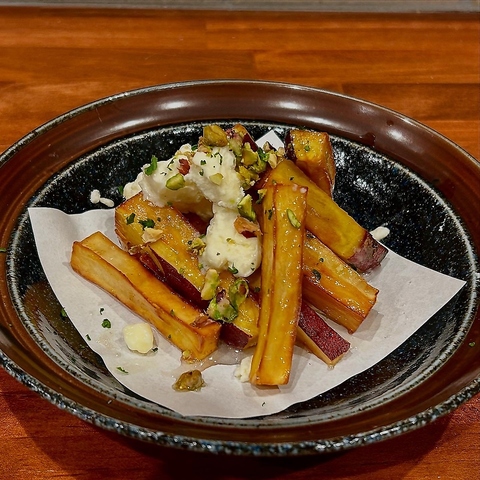 自家製マヨネーズで作ったポテトサラダに酒盗バターを合わせました。酒盗の奥深い風味と塩辛さで大人の味わいに♪男性はもちろん、女性も好みな一皿です。ちょっとしたおつまみにお楽しみください。