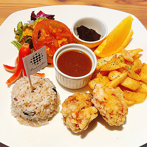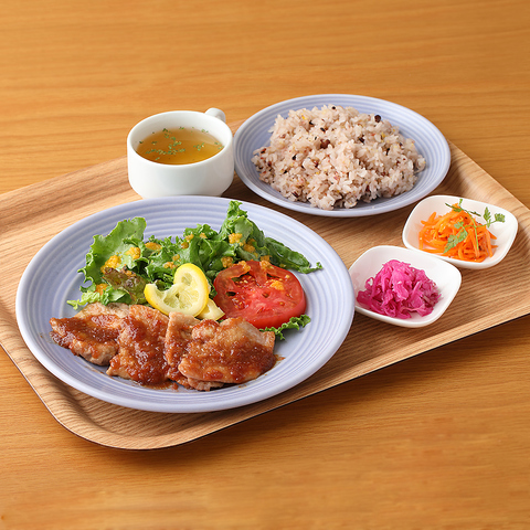 肉料理&魚料理は全て【ミールセット】雑穀米・副菜2種/スープ付き〈ライスLサイズ+100円(税込)〉または【メイン単品】でご注文いただけます。プレートにはたっぷりの新鮮お野菜&食物繊維豊富な雑穀米♪ 身体を気づかうセットプレートです◎