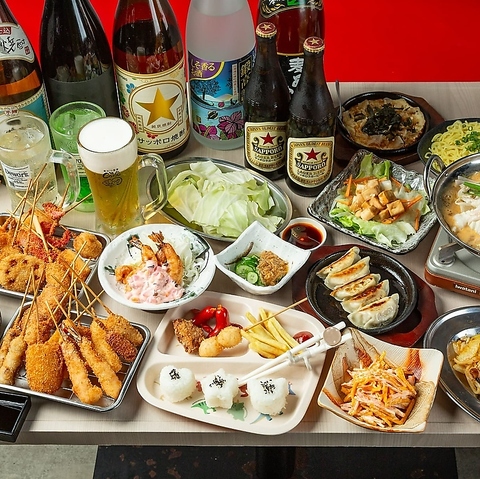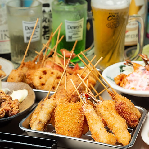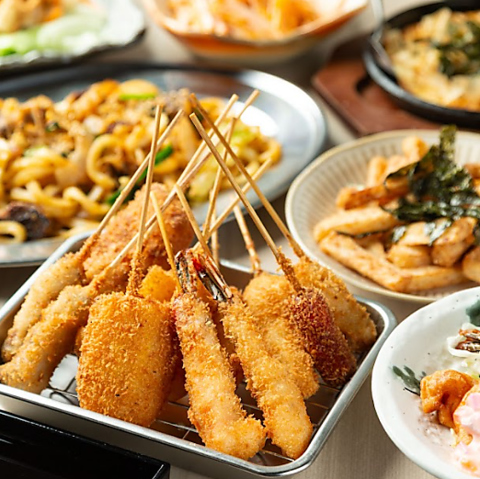 串カツやお刺身、鉄板料理、ホルモン料理など、当店自慢の逸品料理が豊富に揃っております!ご飯やお酒が進むメニューが盛りだくさんで、どれも絶品♪さらに、キッズメニューもご用意しておりますので、お子様連れでも安心して訪れることができます◎家族や友人と一緒に、楽しい食事のひとときをお楽しみくださいませ。