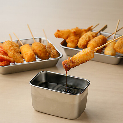 当店の串かつは、使用する食材に妥協なし!高級純正ラードを使用し、脂の旨味がしっかり感じられる一品です★あっさりとした衣で、何本食べても胃もたれの心配なし。厳選したソースとの相性も抜群で、下町の味を楽しみながら特別なひとときをお過ごしください♪