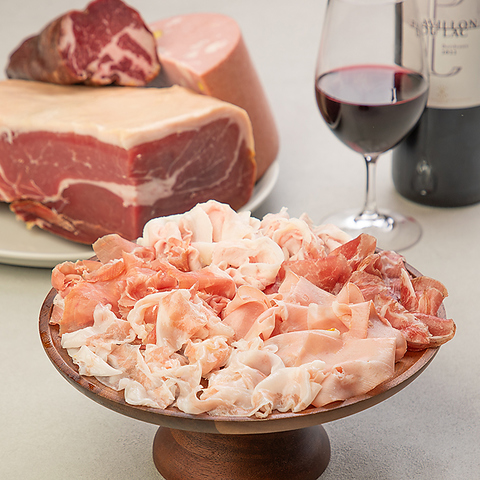 厳選した生ハムは毎朝現地から直送。切り立ての香りと旨みを最大限に引き出すため、低温熟成と手切りにこだわり、その日の気温湿度に応じたカット厚でベストな状態を提供します。