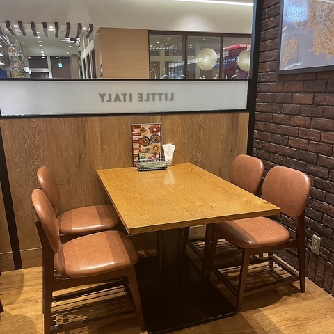 お一人様でも気軽にお立ち寄りいただける、明るい雰囲気のお店!ランチでお得にサラダビュッフェ+ピザやパスタを楽しむのも、ディナーでお酒とタパスを楽しむのも良し◎モダンでおしゃれな空間で、お食事やドリンクをお楽しみいただけます。椅子の下に荷物を置くこともできますので、お買い物帰りにも便利♪