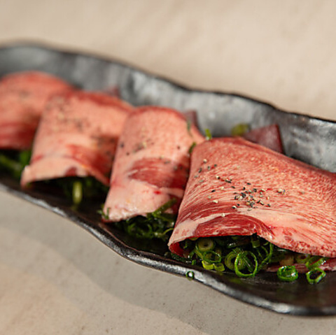 おすすめの「ねぎタン塩」は、大判にカットされた薄切りのタンに青ネギを贅沢に挟み、仕上げました!当店自慢の「ねぎタン塩」でディナーのスタートを切ってください♪シンプルにレモンのみで、タン塩とねぎの味わいを存分にご堪能いただけます。4カットor6カットにて人数に合わせてオーダー可能です。