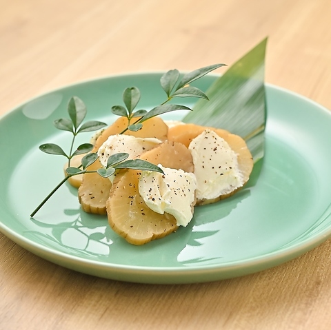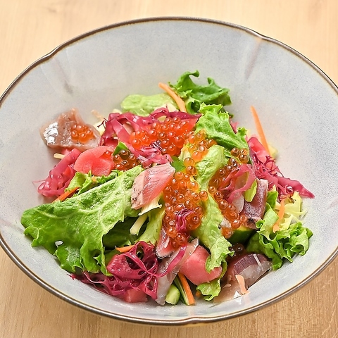 素朴でやさしい味わいが魅力の「おばんざい風」小鉢盛り。だしの効いた煮物や、ごま和え、お浸し、厚揚げと野菜の炊き合わせなど、どこか懐かしさを感じる一品を取り揃えています。見た目も美しく、前菜としても酒のあてとしてもぴったり。ひと手間かけた家庭的な味付けで、気取らず楽しめるのが魅力です。