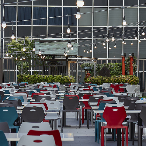 駅ビルの屋上にレトロモダンな空間が出現
