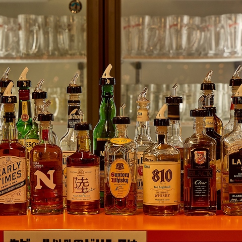 人気銘柄から個性派まで。厳選ウィスキーが20種以上揃います。バーカウンターにずらりと並ぶ圧巻のラインナップ。グラス交換制で飲み比べも◎梅田/大阪駅/駅ビル/BBQ/焼肉/貸切/歓送迎会/屋上/宴会/ビアガーデン/テラス