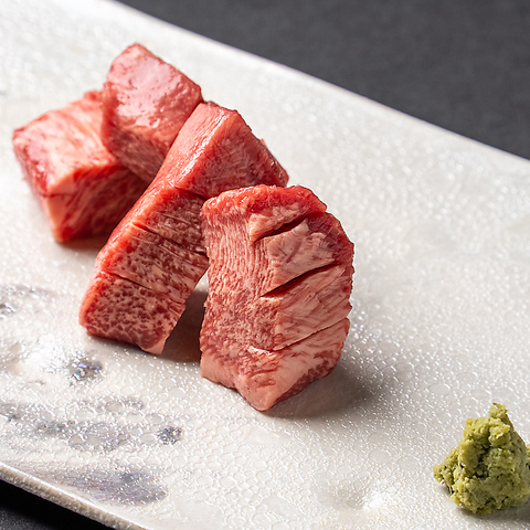 部位の指定は出来ません。100gから注文承ります。量売りのためグラム数(及び値段)が多少前後します。やみいちjr.ではA5和牛を一頭買いし、当店にて部位ごとにカットしています。直接仕入れることにより、通常のお店では入手困難な希少部位を含め上質なお肉を、リーズナブルな価格帯でご提供しています。