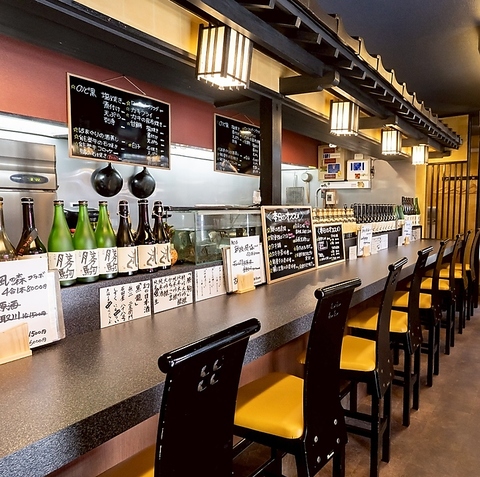カウンター席もあり、少人数でも気軽にお立ち寄りいただけます!新鮮な魚介を使用した料理を目の前で楽しむことができ、和の趣を感じる贅沢なひとときを提供します。新鮮な魚介を使用した刺身盛り合わせや、季節の野菜を使った天ぷらなどの、豪華な料理が勢ぞろい。焼酎や日本酒が充実しており、飲み放題付きのコースでもお楽しみいただけます。