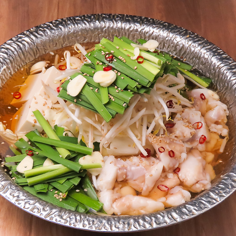 大人気のもつ鍋◎ぷるんとした牛もつの旨みが、コク深いスープに溶け出す至福の鍋。もつの旨みが溶け込んだ濃厚スープが決め手!ニラ、にんにく、もやしとの相性抜群でビールとの相性も◎ 絶対外せない人気メニュー!