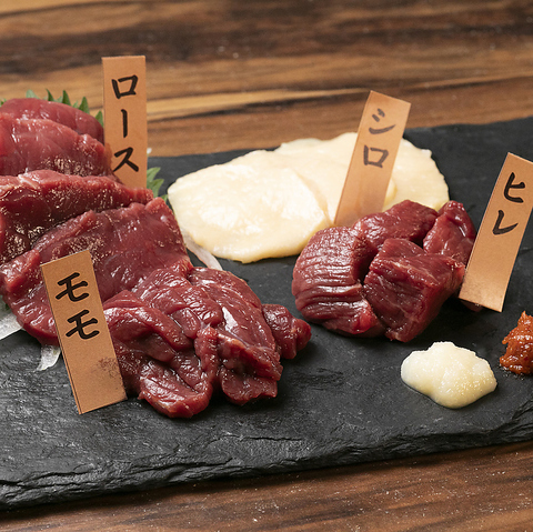 素材と鮮度にこだわった当店看板メニューの馬刺し!赤身やロース、ヒレはもちろん、ハツなどの希少部位も◎